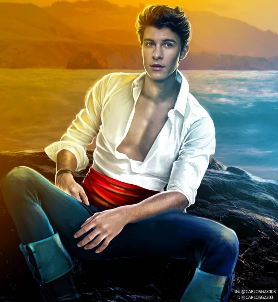 Les pièces de Carlos sont si réelles que vous pourriez presque tendre la main et les toucher. Sa représentation de Tharion de Maison du ciel et du souffle est un régal pour les yeux. Il a également créé un morceau de Shawn Mendes dans le rôle du prince Eric qui est également agréable à regarder.