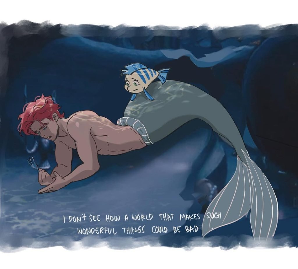 En parlant d’art de style Disney, Jack of Hearts a ça. L’illustrateur basé au Royaume-Uni a une propension particulière à représenter les princes Disney dans des situations de servitude. Quand ils ne font pas cela, on peut les trouver en train de créer des œuvres d’art époustouflantes. Prenez leurs illustrations de mer-Lil Nas X et d’autres hommes très attirants. Nous avons ajouté un bonus King Triton et mer-Price Eric.