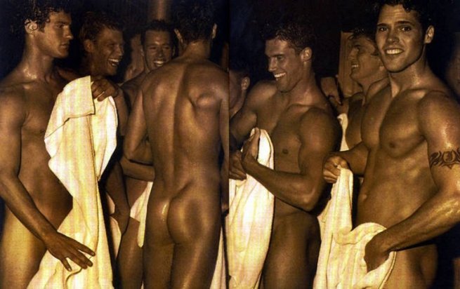 Juste une poignée de mecs qui sèchent après une baignade nue. Rien à voir ici.