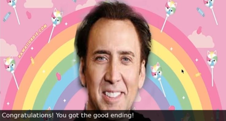 Si vous avez déjà voulu sortir avec Nicolas Cage – et qui ne le fait pas – alors Encage moi doucement est définitivement pour vous. Sorti en 2015, ce joyau de rencontres offre à ses joueurs (et à ceux qui sont secrètement amoureux de l’acteur hollywoodien) une chance de faire l’expérience de Nicolas Cage. dans toute sa radieuse gloire. Vous emmenant dans un voyage d’amour et de fantaisie, ce jeu vous préparera à réserver un aller simple pour Hollywood dans le but d’être Mme Cage (indice : faites très attention à ce que vous dites à propos de son visage)/