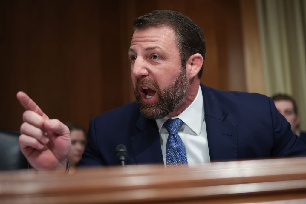 Le sénateur Markwayne Mullin (R-OK) s'adresse aux journalistes à l'extérieur de la salle du Sénat au Capitole des États-Unis, le 13 mars 2025 (Getty)