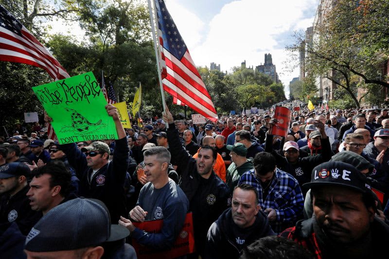 Les syndicats de police et de pompiers ont intenté des poursuites contre le mandat. La Police Benevolent Association de la ville de New York, qui représente 24 000 policiers, a perdu une offre plus tôt cette semaine pour une ordonnance du tribunal visant à suspendre le délai, mais a porté sa demande devant une cour d’appel de l’État où elle est toujours en instance.