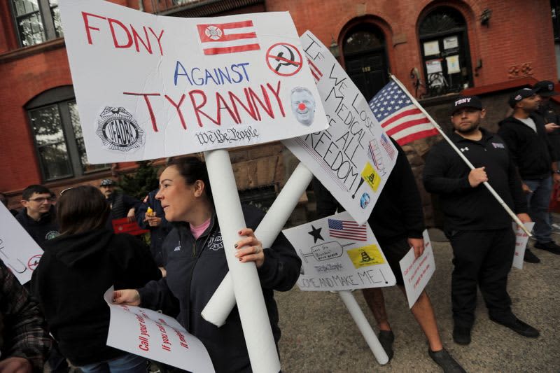 NEW YORK (Reuters) – Les responsables de la ville de New York se préparaient vendredi à une pénurie de pompiers, de policiers et d’autres premiers intervenants alors qu’une épreuve de force se profile entre la ville et sa main-d’œuvre en uniforme non vaccinée, qui fait face à une date limite de 17 heures HAE (2100 GMT) pour être immunisé.