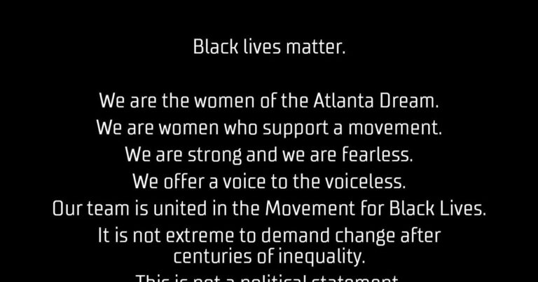 Bien que la WNBA ait répondu à la controverse en publiant une déclaration de soutien à l'égalité, à l'équité et à la justice sociale, suivie d'une déclaration de soutien «apolitique» d'un porte-parole de l'équipe pour «les affaires du sport et du divertissement», le Dream a tweeté la déclaration des joueurs vendredi sans commentaire, sauf pour ajouter qu'ils ont oublié par inadvertance un joueur.