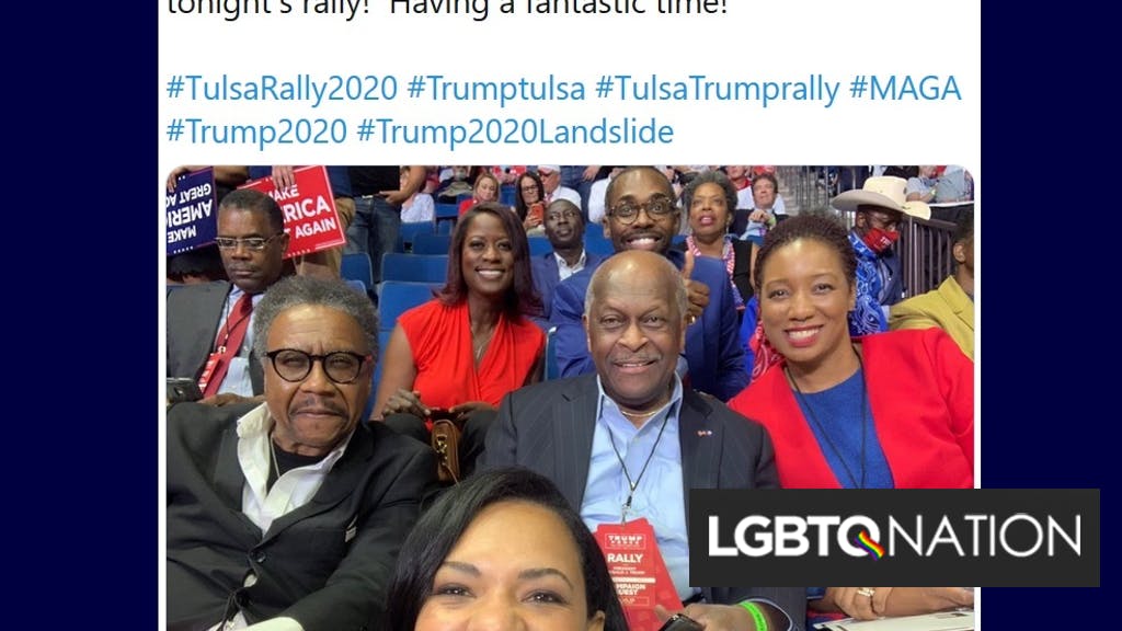 Herman Cain a tweeté d'un rassemblement Trump le 20 juin 2020, sans masque.Photo: Capture d'écran / Twitter Herman Cain, ancien…