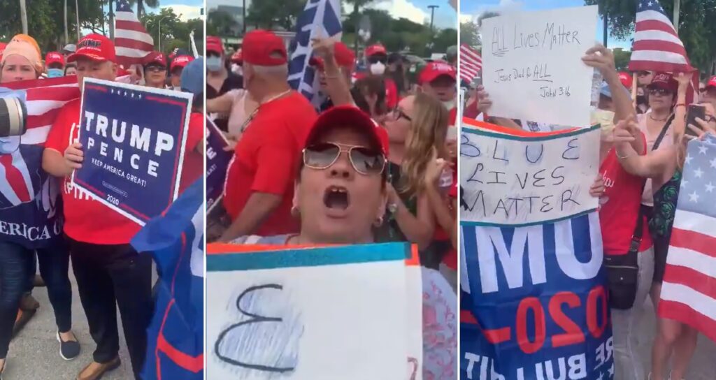 Plus de 100 partisans du président Donald Trump se sont réunis dimanche après-midi à Miami Lakes, brandissant de grands drapeaux…