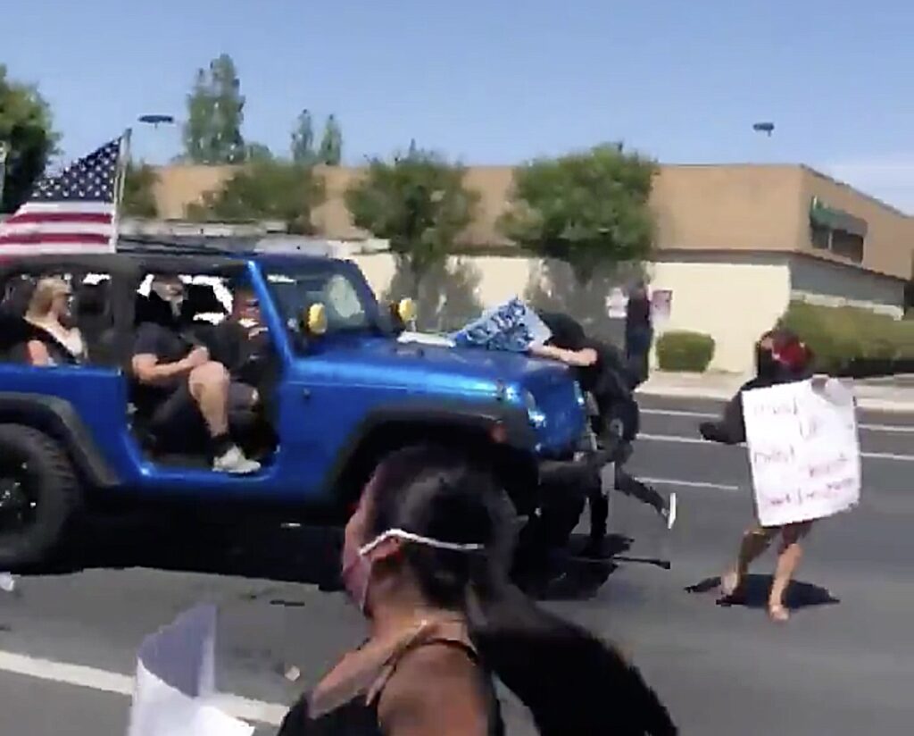 Un horrible acte d'agression a été capturé sur vidéo samedi lorsqu'une Jeep arborant un drapeau Trump a tiré sur ses…