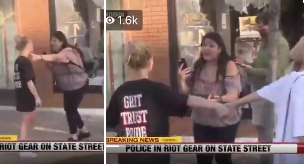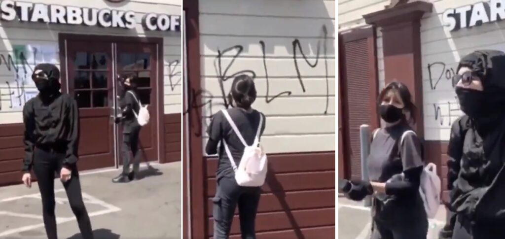 Une jeune femme blanche a été vue en train de donner des coups de pied dans une vitrine de magasin…