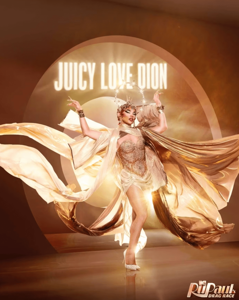 Juicy Love Dion est la deuxième diva de Dion à entrer dans le Course de dragsters la saison 18 se bat pour la couronne, aux côtés d'Athéna Dion. Juicy est la petite-fille drag d'Athena et la fille drag de Morphine Love Dion de la saison 16, mais elle espère faire un peu mieux que sa mère en allant jusqu'à la finale. Elle se décrit comme « la poupée dansante afro-cubaine de Miami » et est apparue en tant que compétitrice lors de la saison 2024 de Alors tu penses que tu peux danser.