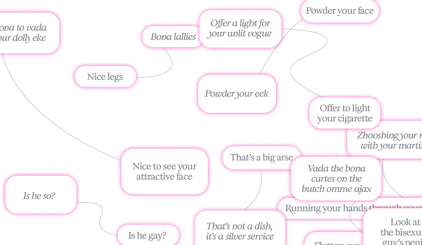 De nos jours, l’Anglais queer n’a que l’embarras du choix lorsqu’il s’agit de faire la cour. Bénéficiant d’une pléthore d’applications spécialisées et – s’il est vraiment old school – de bars, il a un accès instantané à la communauté et au coït. Bien sûr, il n’en a pas toujours été ainsi. Jusqu’en 1967, la sodomie était un crime. Néanmoins, la sodomie s’est ensuivie, tout comme la camperie et les pitreries qui font des reines de Grande-Bretagne parmi les plus rusées à ce jour. Comment? Polari, un chant oublié parlé à Londres et dans tout le Royaume-Uni à partir du début du XXe siècle. Grâce à lui, les gays pouvaient converser sans se dénoncer, ce qui s’accompagnait alors de lourdes réprimandes : emprisonnement, violences, tout le lot. Aujourd’hui, le polari est une langue en voie de disparition, et seuls quelques locuteurs parlent couramment.