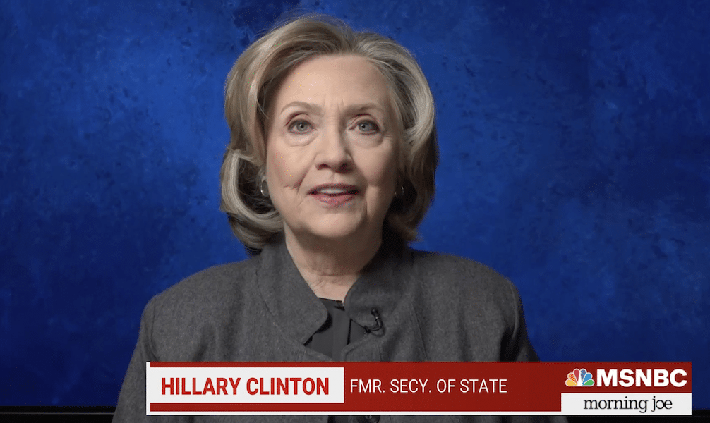 Intervenant sur MSNBC Bonjour Joe, Clinton a dénoncé le soutien à Poutine par Trump et d’autres personnalités républicaines.