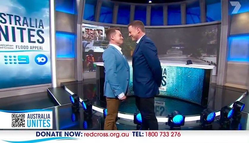 La fin justifie-t-elle les moyens? C’est la question que nous nous posons après avoir visionné ce clip. Lors d’une collecte de fonds en direct pour la Croix-Rouge, deux animateurs de télévision australiens hétérosexuels ont fait un don de 50 000 $. La collecte de fonds, appelée Australia Unites, a été organisée pour collecter des fonds pour les victimes des inondations. Les inondations du mois dernier dans l’est de l’Australie, les pires de l’histoire du pays, ont tué au moins 22 personnes et coûté au moins 2,5 milliards de dollars de dégâts.
