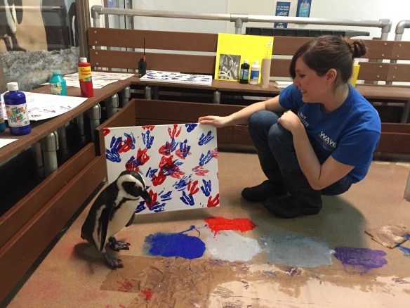 Green Bean est également un peintre talentueux, tout comme certains de ses amis à plumes. Newport Aquarium crée des œuvres d'art en permettant aux pingouins de parcourir la peinture et sur papier, élaborant: «L'enrichissement consiste à fournir aux animaux des environnements, des objets et des activités stimulants et stimulants. Il vise à améliorer leur activité et fournit une stimulation mentale pour les pingouins. Qui n'aurait pas de plaisir à piétiner et à éclabousser dans la peinture ?! «