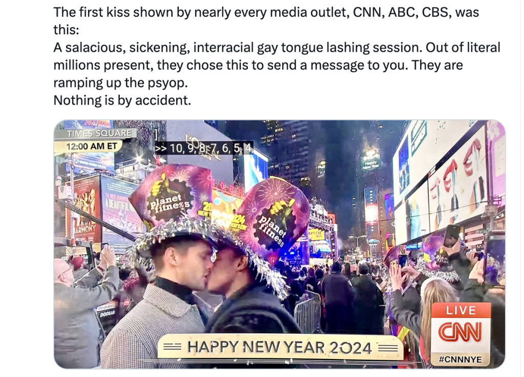 Alors que les caméras capturaient la scène, le premier baiser de 2024 capté par CNN – aux côtés de grandes chaînes telles que ABC News et CBS – se trouvait être partagé par deux hommes.