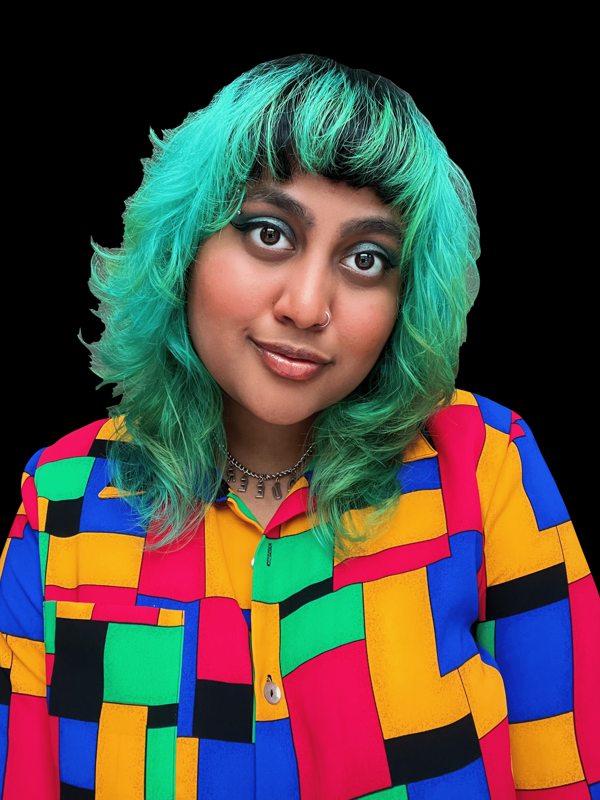 Prishita : Un moment de joie que j’ai vécu avec mes cheveux et mon sexe était en fait à Trans Pride cette année. C’était un ou deux jours avant que je me fasse couper les cheveux en une sorte de mulet-y shag. Il était issu d’un mulet et je l’ai coupé différemment. Et je l’ai reteint. C’était vert et bleu, il y avait comme des morceaux verts à l’avant, et puis le reste était bleu. Et j’avais juste l’impression que c’était l’une des premières fois après le verrouillage et COVID et tout ce qui s’est passé au cours de la dernière année et demie où je faisais partie de la communauté, j’étais là-bas, et c’était ma première Trans Pride en tant que sortie personne non binaire aussi. C’était la première fois que je me présentais comme moi-même d’une manière qui me paraissait vraiment authentique par rapport à qui je suis et à la façon dont je voulais m’exprimer.