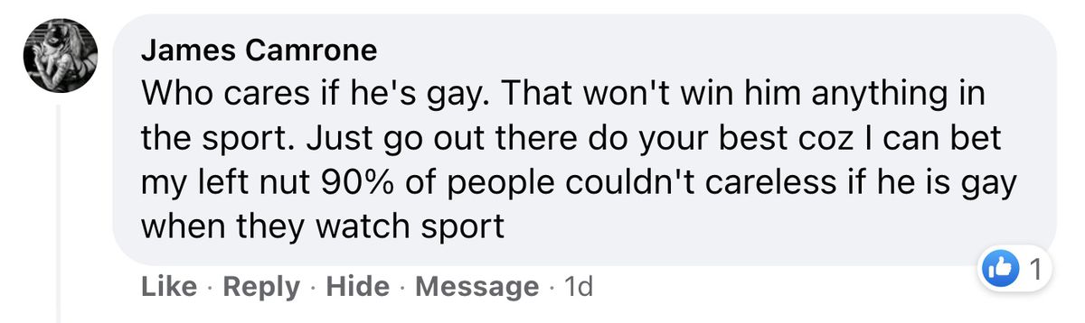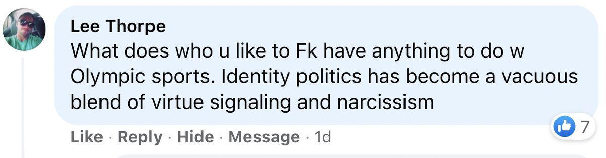 Le fait est que ces gens s’en soucient beaucoup. Ils se soucient suffisamment de prendre le temps de répondre à une publication Facebook qu’ils n’aiment pas. Cela les rend fous que les athlètes gais, bi, lesbiennes et trans sortent en masse. Et il n’y a rien qu’ils puissent faire pour l’arrêter.