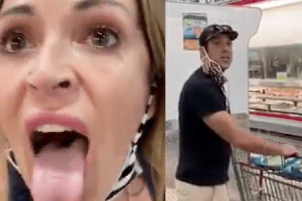 Après que la femme a menacé d'appeler la sécurité, un employé s'approche et demande à son petit ami de mettre son masque, étant donné que la loi l'exige. Alors que la confrontation se poursuit, le petit ami demande: "Mec, pour quoi tu m'enregistre?"