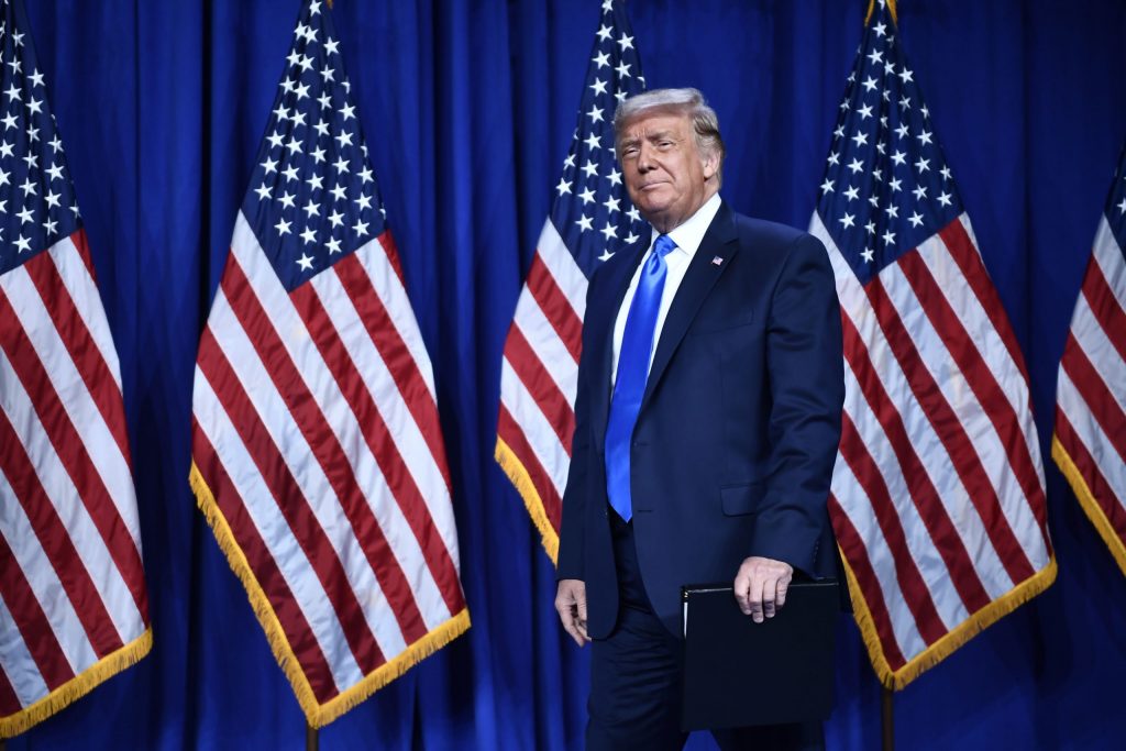 Le président américain Donald Trump arrive pour prendre la parole lors de la première journée de la Convention nationale républicaine. (BRENDAN SMIALOWSKI / AFP via Getty)
