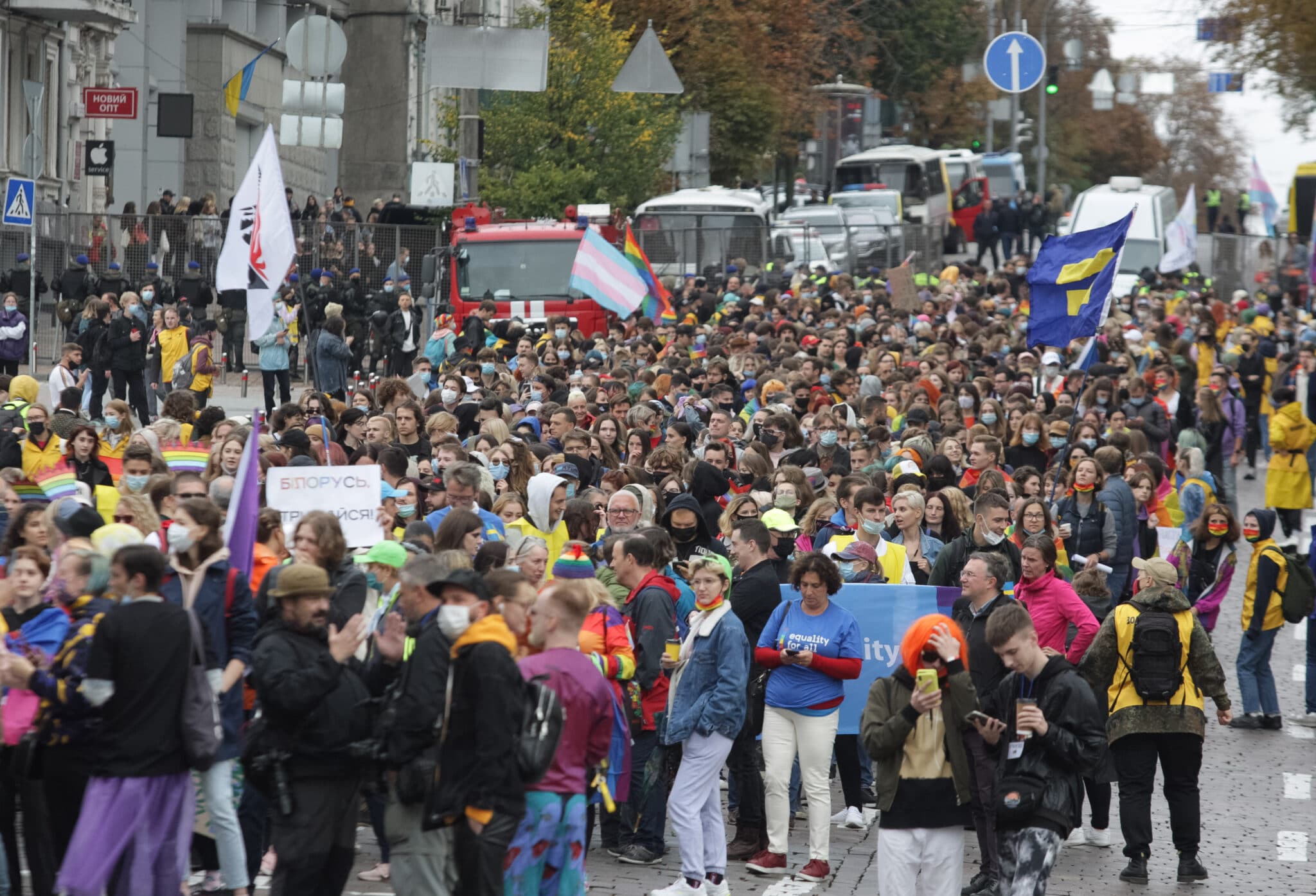Les organisateurs ont déclaré qu’environ 7 000 personnes ont assisté à la marche pour l’égalité de Kiev, chacune défiant l’opposition féroce des groupes religieux et nationalistes.