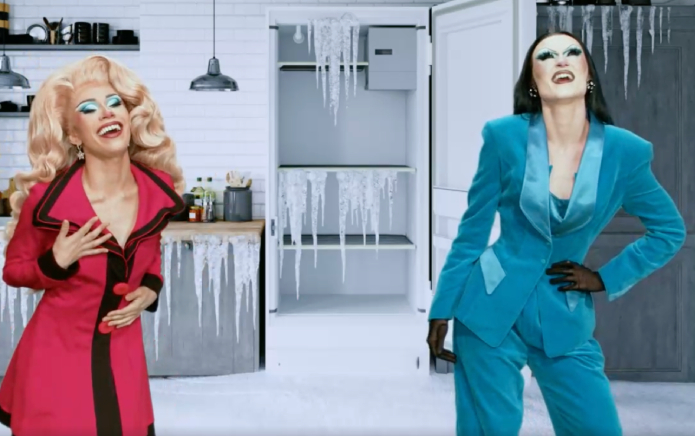 Après avoir incarné leur personnage, les reines se sont rendues au studio avec Carson et Tracy pour filmer leurs publicités respectives.