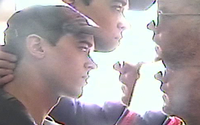 Un autre instantané – qui a un effet VHS rétro – montre les acteurs rêveurs participant à un face-à-face passionné.