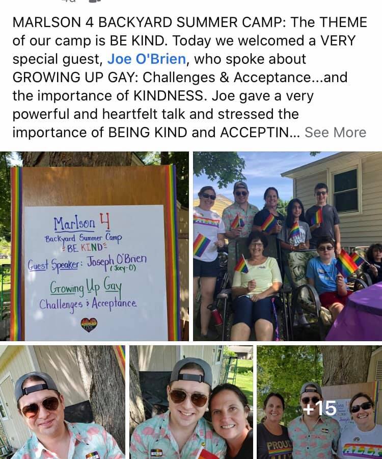 Dans la série de photos téléchargées le jeudi 16 juillet, Joe semble être le conférencier invité lors d'un événement LGBTQ pour enfants. Selon le message: «CAMP D'ÉTÉ MARLSON 4 BACKYARD: Le THÈME de notre camp est BE KIND. Aujourd'hui, nous avons accueilli un invité TRÈS spécial, Joe O'Brien, qui a parlé de GROW UP GAY: Challenges & Acceptance… et de l'importance de la gentillesse. Joe a donné un discours très puissant et sincère et a souligné l'importance d'ÊTRE GENRE et d'ACCEPTER TOUTES les personnes. Notre activité de suivi a été de peindre KINDNESS ROCKS qui fera partie du FIELD TRIP VENDREDI de demain. En prime, Holly O'Brien s'est également jointe à nous au camp aujourd'hui. »