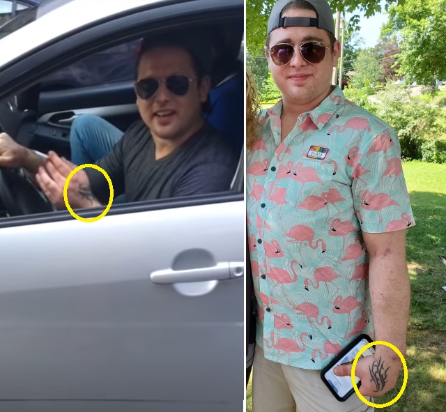 Un profil Facebook avec le nom d'utilisateur «Joe O'Brien (Dustin Gold)» a été associé au conducteur vu dans la vidéo. Une pièce d'identité positive a été établie à l'aide de photos du profil. Une capture d'écran de la vidéo, qui montre clairement le tatouage de la main du conducteur, est une correspondance presque identique à une photo que Joe a téléchargée sur son profil Facebook deux jours avant l'attaque.
