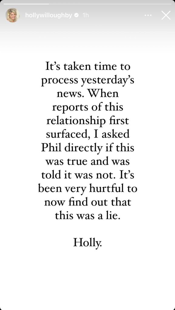 « La déclaration de Phillip hier révèle qu’il a menti aux gens d’ITV, de la haute direction aux autres présentateurs, à YMU, aux médias et à d’autres au sujet de cette relation. »