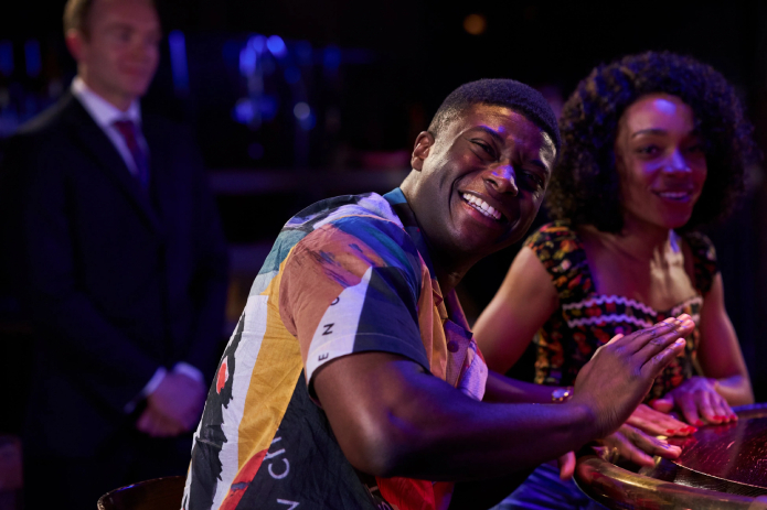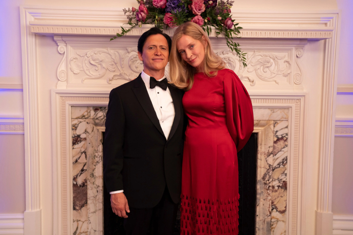 Plus de rouge, de blanc et de royal pouvoir entrants : le roi Jacques III (Stephen Fry), la princesse Béatrice (Ellie Bamber), le prince Phillip (Thomas Flynn), Percy Okonjo (Malcolm Atobrah) et Shaan Shrivistava (Akshay Khanna).