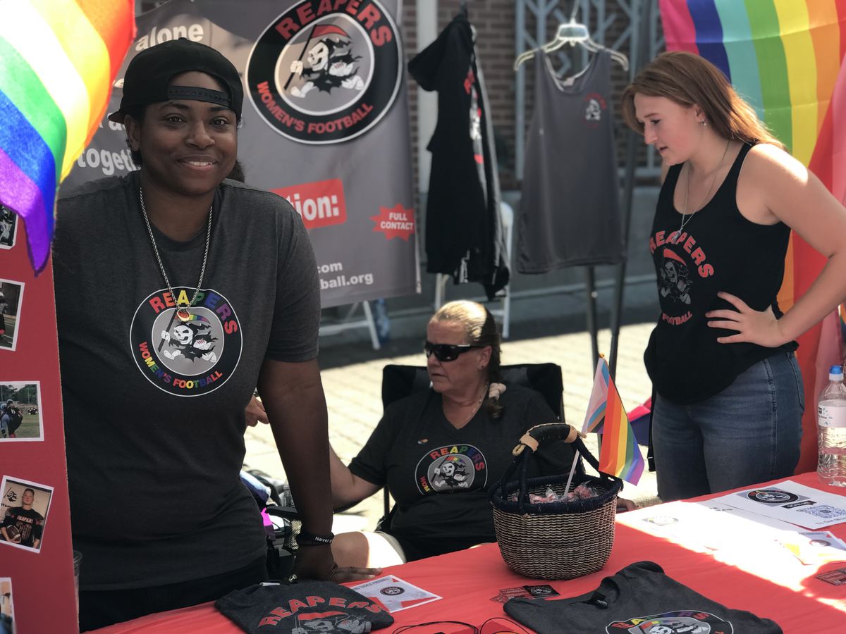 L’équipe était Reapers Women’s Football, une équipe basée dans l’ouest du Connecticut. Je me suis approché de leur tente et j’ai rencontré un groupe de joueurs fiers, intimidants et sérieux qui semblaient prêts à se préparer à tout moment et à s’élancer.