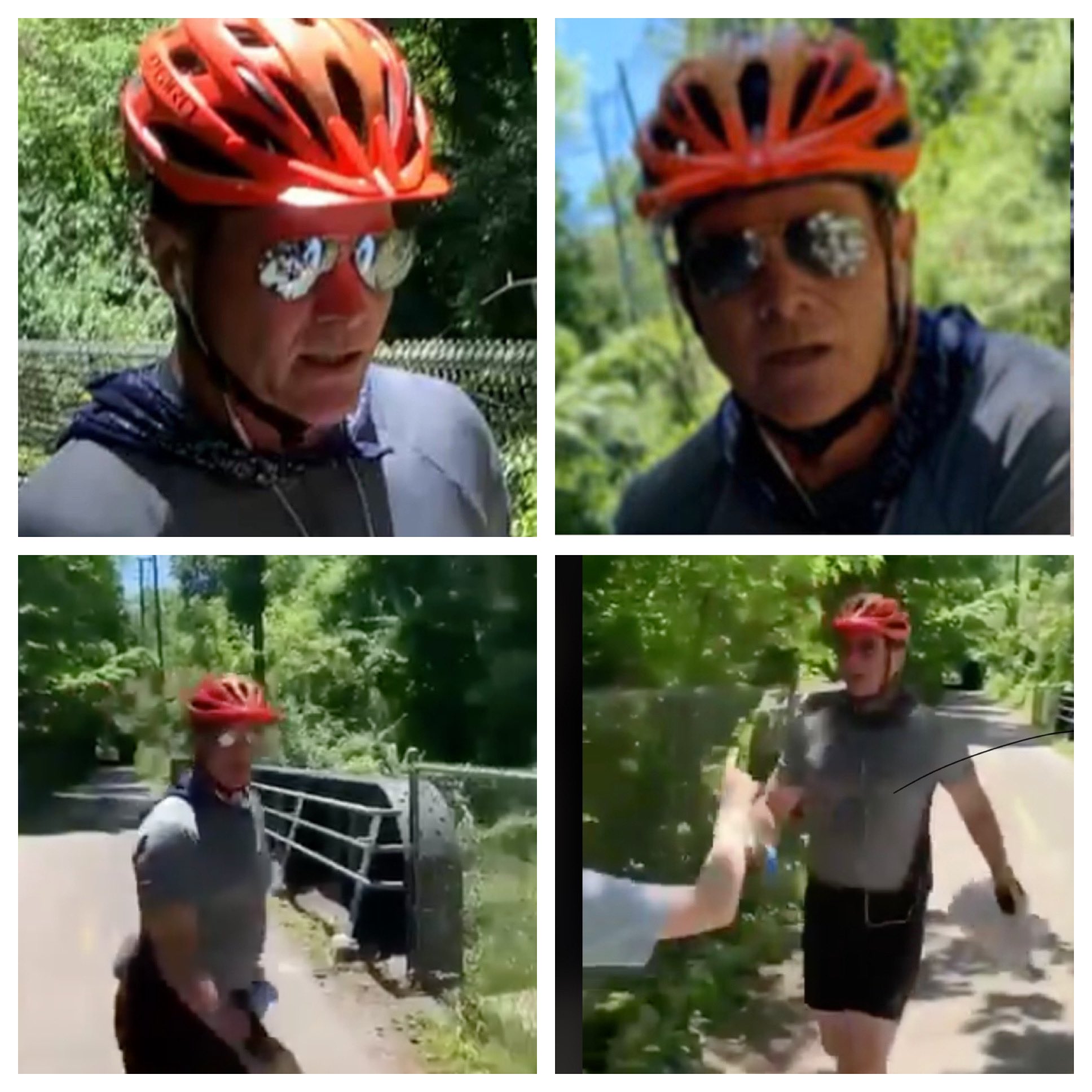 La police recherche un cycliste sur une piste cyclable du Maryland qui a été filmé en train de confronter une petite fille qui raccrochait des dépliants à l'appui des manifestations contre le meurtre de George Floyd par la police, saisissant les affiches de sa main, puis accusant un homme qui était filmer la rencontre et le faire tomber au sol.