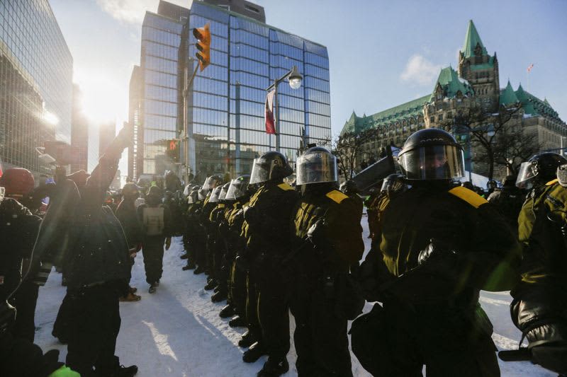 OTTAWA (Reuters) – La police canadienne a utilisé samedi du gaz poivré et des grenades assourdissantes et a procédé à des dizaines d’arrestations alors qu’elle évacuait les manifestants de la rue devant le Parlement, où ils campaient depuis plus de trois semaines pour protester contre les restrictions pandémiques.