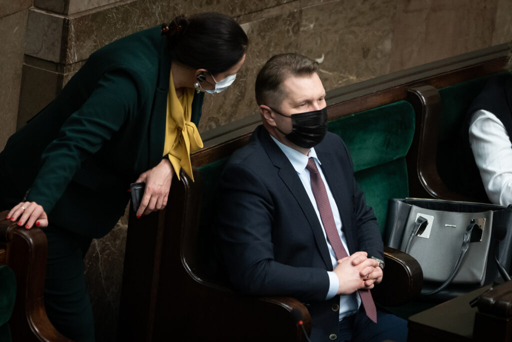 Przemyslaw Czarnek lors de la 48e session du Sejm (chambre basse) à Varsovie, en Pologne, le 9 février 2022 (Mateusz Wlodarczyk/NurPhoto via Getty Images)