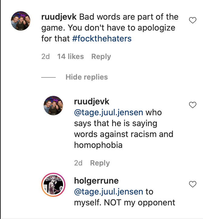 Rune a également été actif dans la section commentaires de ses excuses, affirmant qu’il ne dirigeait pas de railleries homophobes envers son adversaire.