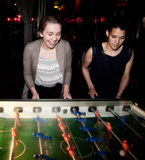 J’ai fini par rester à Vela jusqu’à sa fermeture à 2 heures du matin. Alors que la foule du bureau filtrait, les étudiants entraient et la vraie fête commençait. J’ai passé la première partie de la nuit avec un groupe de jeunes punks non binaires jouant au baby-foot. Suivi d’une danse avec deux étudiantes lesbiennes, qui m’ont commandé leur bière danoise préférée et ont patiemment parlé anglais toute la nuit. Il s’avère que c’était aussi leur première fois à Vela, étant eux-mêmes nouveaux dans la ville. L’un de nous n’était à Copenhague que depuis six mois, l’autre deux mois et le troisième moins de 48 heures. Seuls et désœuvrés, nous avons tous cherché un lieu queer.