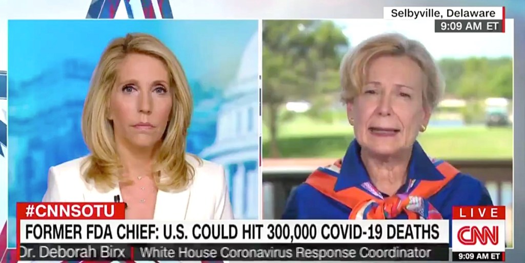 Le Dr Deborah Birx, coordinatrice de la réponse aux coronavirus pour le groupe de travail sur les coronavirus de la Maison Blanche depuis février 2020, a été interrogée par Dana Bash de CNN dimanche si elle pensait qu'il était possible que les projections américaines de décès pourraient atteindre 300000 d'ici la fin de l'année étaient correctes.
