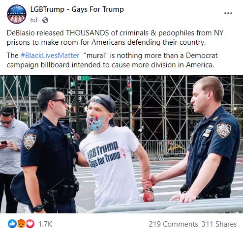 «La« murale »#BlackLivesMatter n’est rien de plus qu’un panneau d’affichage de la campagne démocrate destiné à provoquer plus de division en Amérique», lit-on dans un article sur la page LGBTrump.
