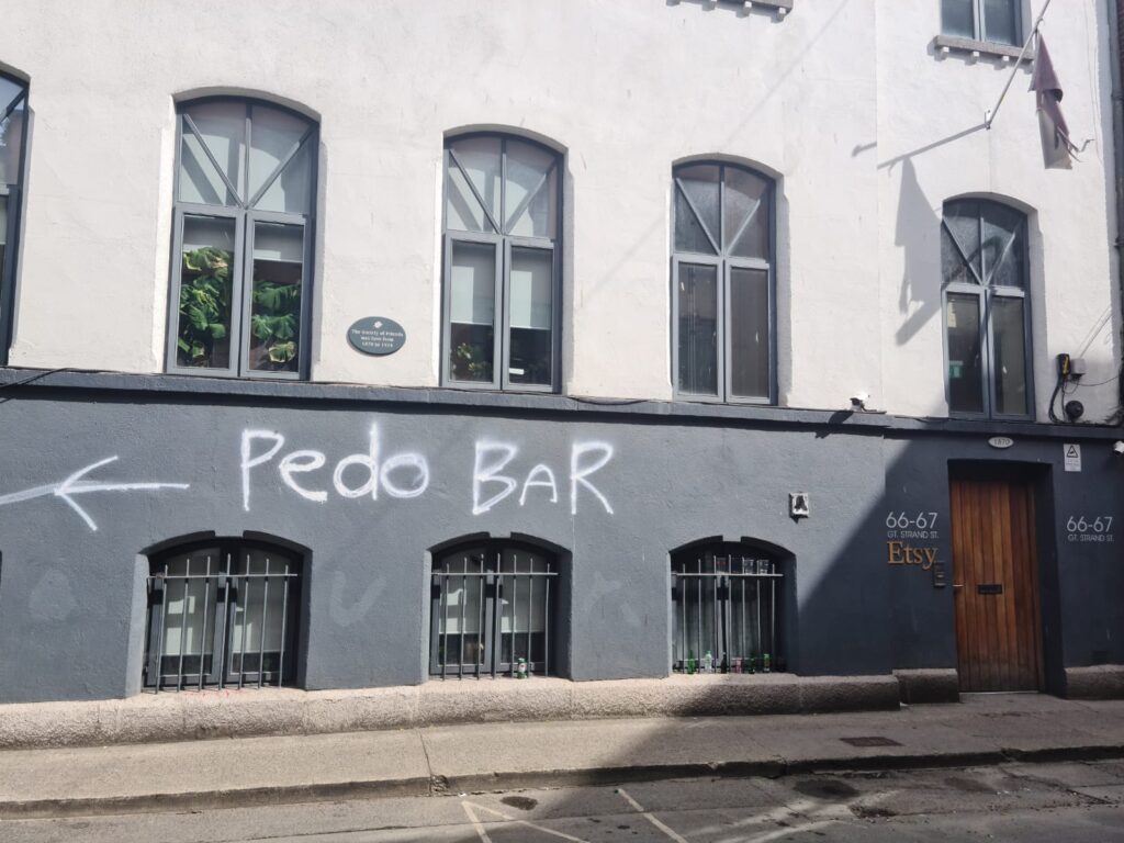 L’emblématique drag queen irlandais Panti Bliss, propriétaire de Pantibar dans le centre-ville de Dublin, a partagé une photo des graffitis homophobes sur Twitter.