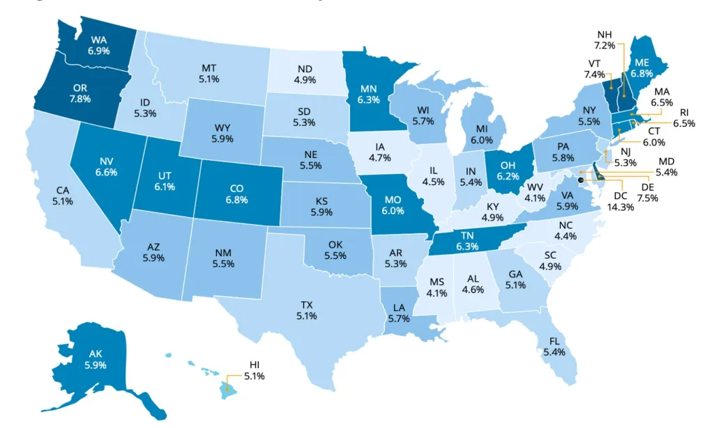 Cependant, si vous examinez les données en fonction du pourcentage d’adultes qui s’identifient comme LGBTQ+, les résultats diffèrent. En utilisant cette mesure, DC a le pourcentage le plus élevé de résidents queer, à 14,3 pour cent. Viennent ensuite l’Oregon (7,8 pour cent) et le Delaware (7,5 pour cent).