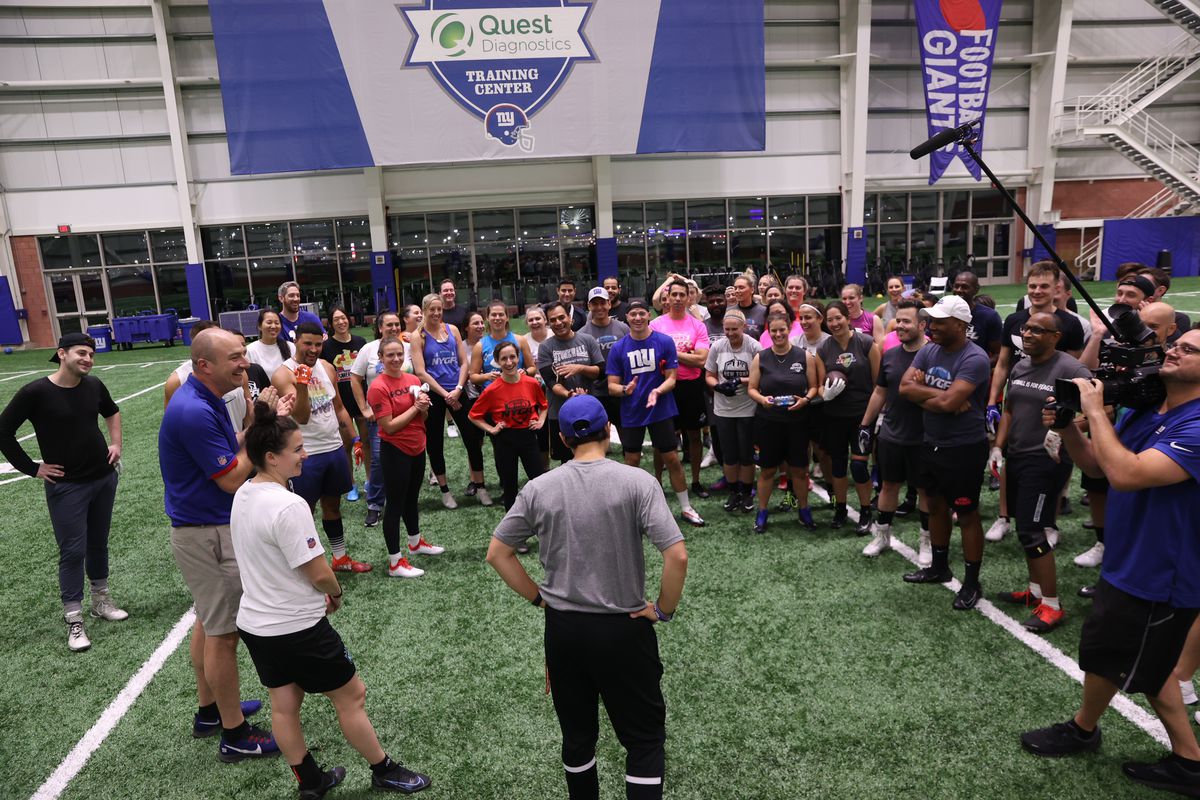 Les Giants de New York organisent une clinique de la ligue de football gay avec des joueurs et des entraîneurs de la NFL
