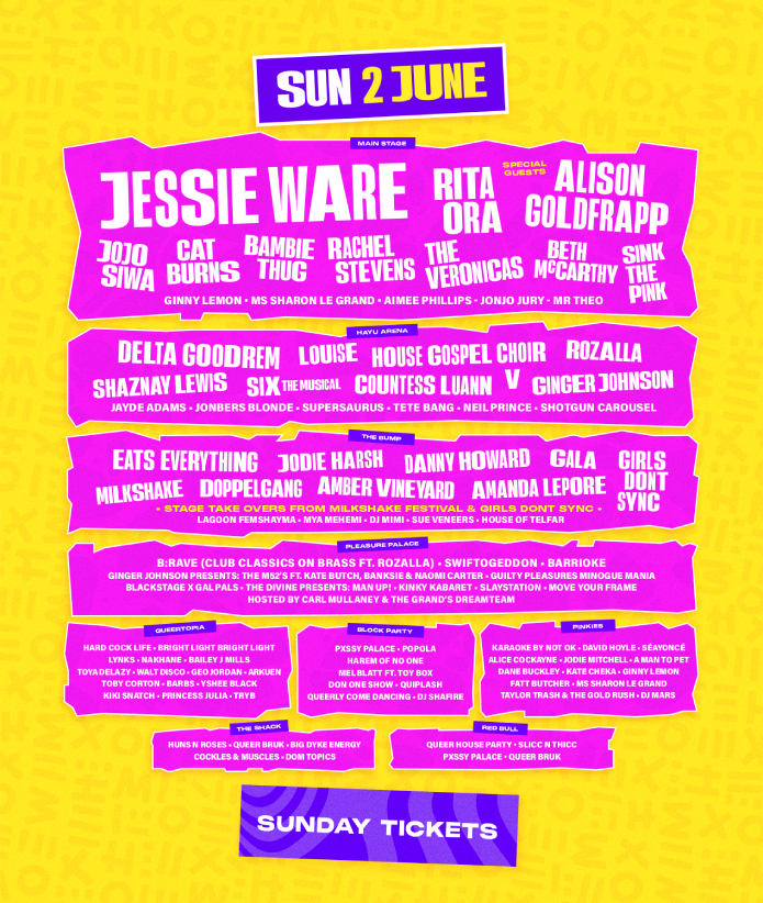 Le programme du spectacle pop de cette année est – une fois de plus – majeur, avec des performances de Jessie Ware, En Vogue, Slayyyter, Rita Ora, Eve, Rebecca Black, Alison Goldfrapp, Jojo Siwa, Rachel Stevens, Bambie Thug, The Veronicas, Bananarama, Cher Lloyd et B*witched. (Pensez à tous ces pop bangers pendant une seconde.)