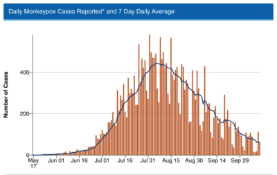Depuis un pic en août, le nombre de cas quotidiens signalés de virus monkeypox a diminué de 85 %.