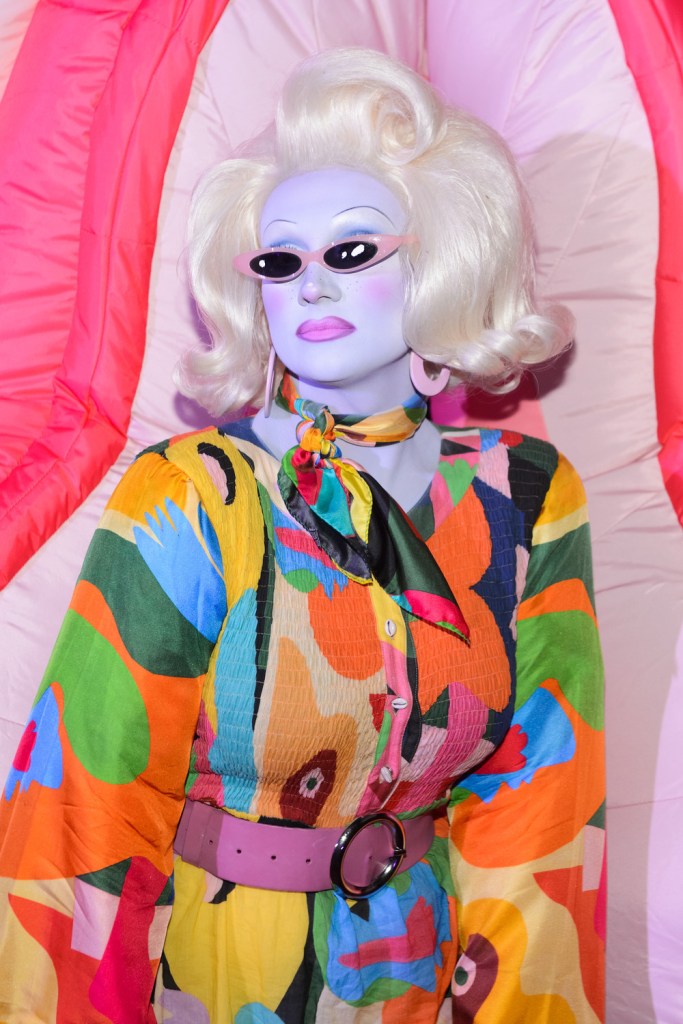 Aujourd’hui, la drag star est débleuie et déperruquée – « pardonnez-moi d’être déguisée en humain » – alors qu’elle rentre tout juste d’un voyage à Joshua Tree en Californie, où elle a séjourné dans un petit OVNI orange dans le désert. Oui, vraiment.