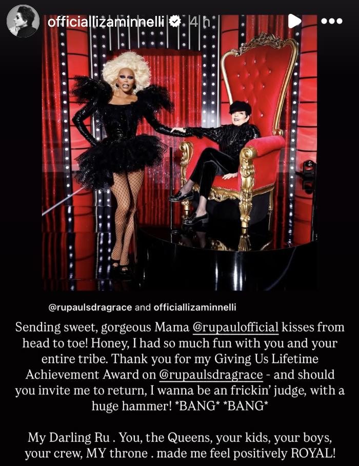 Liza s'est déjà adressée à un message à RuPaul la remerciant pour l'expérience – indiquant que la finale (et peut-être plusieurs couronnes) a déjà été filmée.