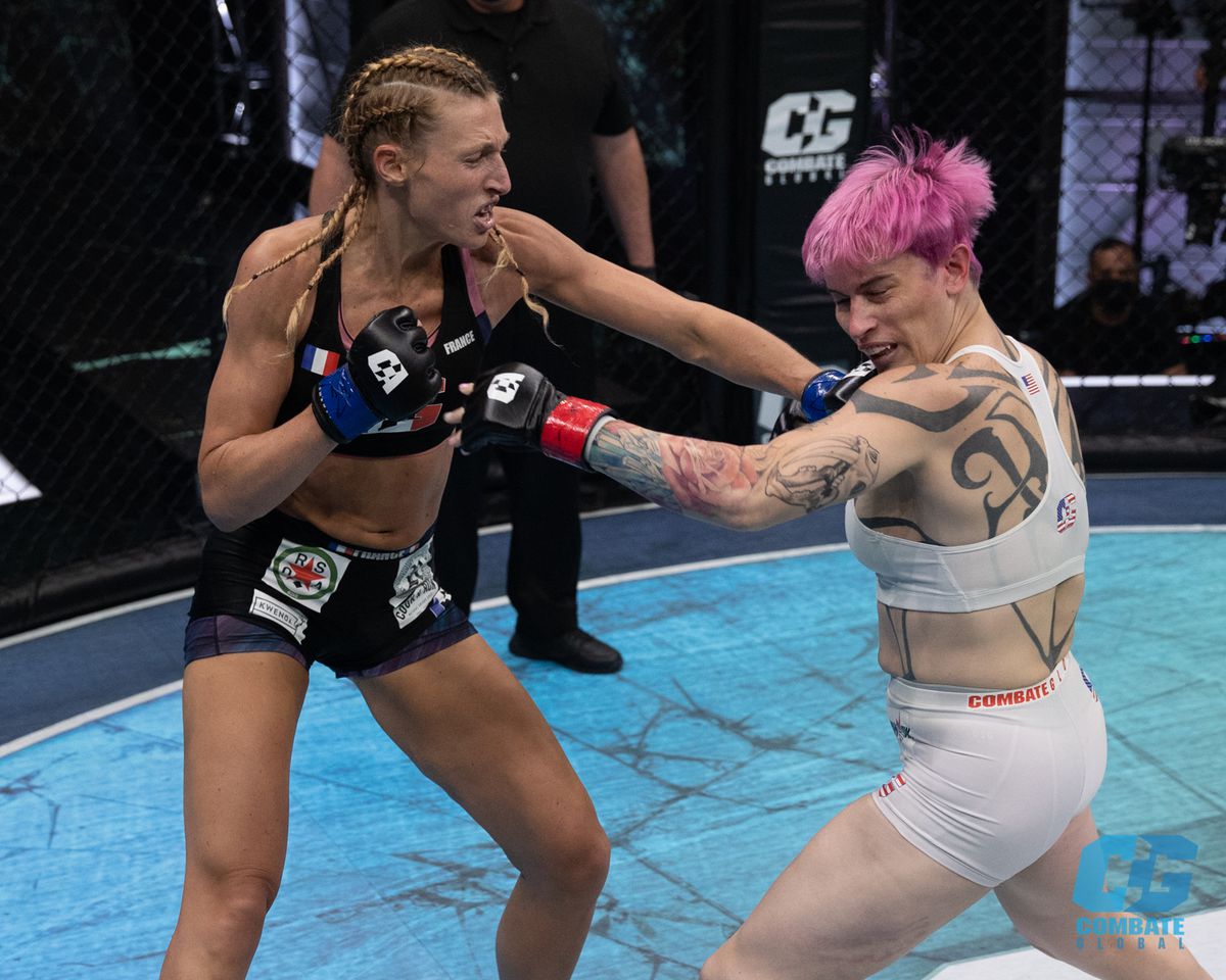 Le combat était un microcosme d’une vie de survivant. Le premier tour a vu McLaughlin résister aux coups de poing précis de Provost. Cela reflétait une jeunesse difficile grandissant queer en Caroline du Sud, la « boucle de la ceinture biblique », comme elle l’appelait.