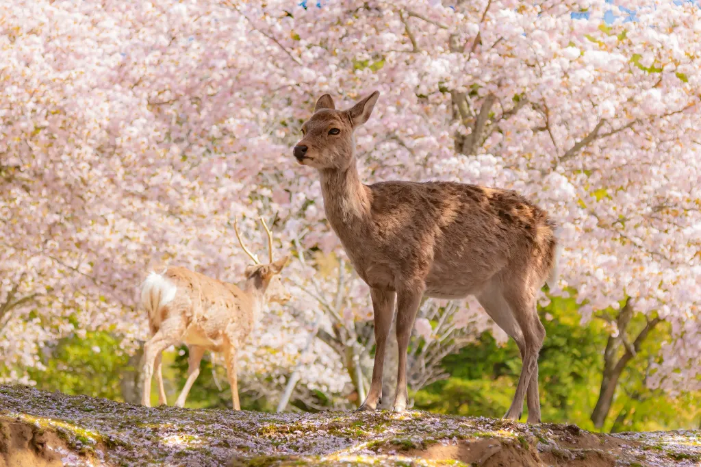 Il y a des étangs pittoresques reflétant les cerisiers en fleurs et les érables, et la possibilité de se lier d'amitié avec les quelque 1 000 cerfs qui y vivent. Vous pouvez également acheter des craquelins de cerf dans les stands à proximité et regarder les animaux s'incliner en attendant de recevoir leur collation préférée.