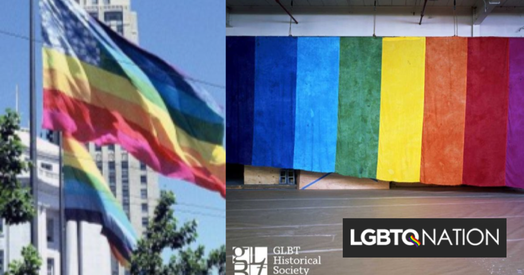 Aujourd’hui le @GLBTHistory Museum & Archives a dévoilé le drapeau arc-en-ciel original de Gilbert Baker ????✨????
