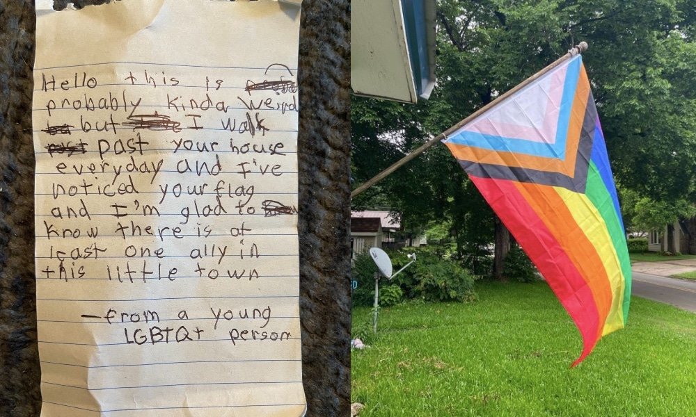 Un chef de police arrêté devant une caméra en train de mettre un panneau KKK sur le bureau d’un officier noir / Nation LGBTQ2 juillet 2021