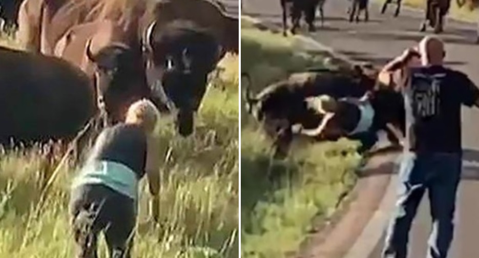 Bison attaque vicieusement un touriste motard qui s'est trop rapproché, la jetant en l'air et lui arrachant son pantalon: REGARDER14 août 2020
