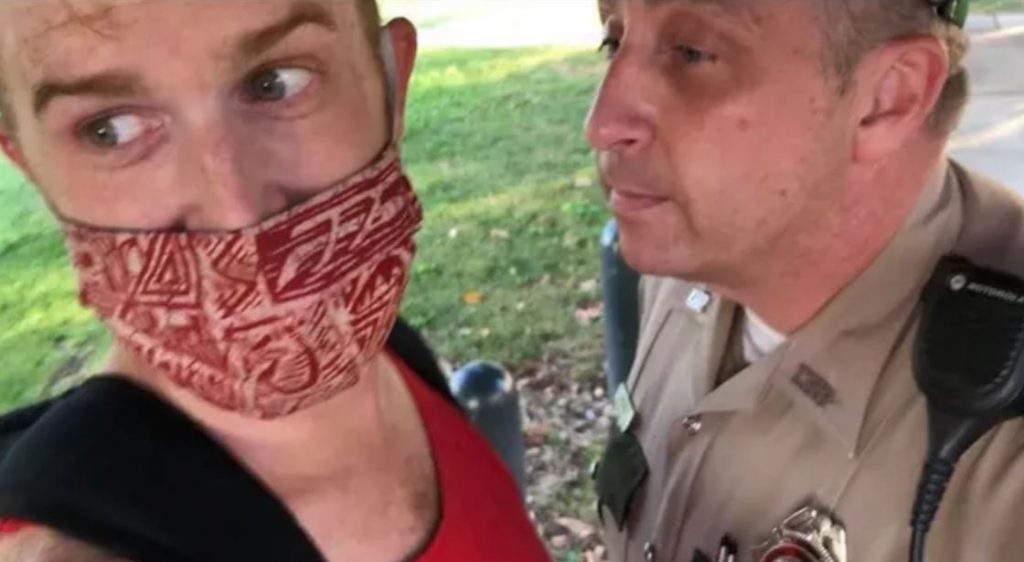 Un policier du Tennessee sans masque déchire le masque facial d'un homme qui filmait une halte routière13 août 2020
